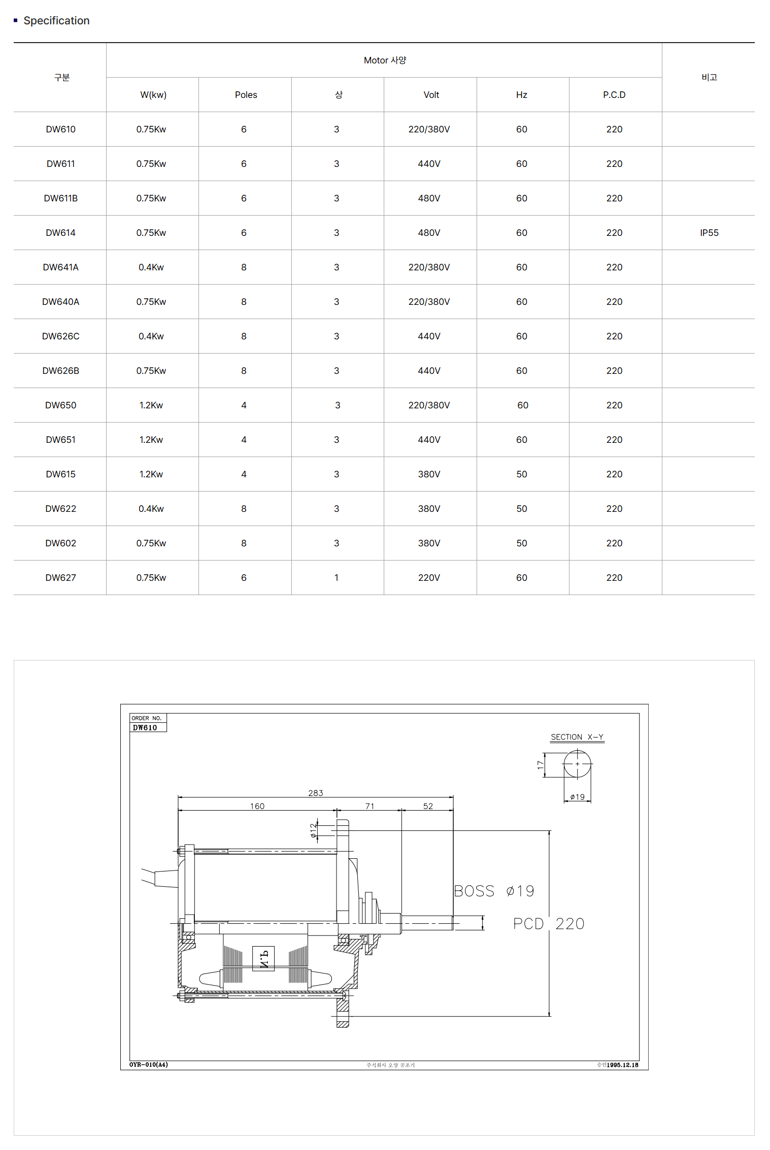 Động cơ size 19-0.75Kw model DW640 O-YANG KONGJOKI
