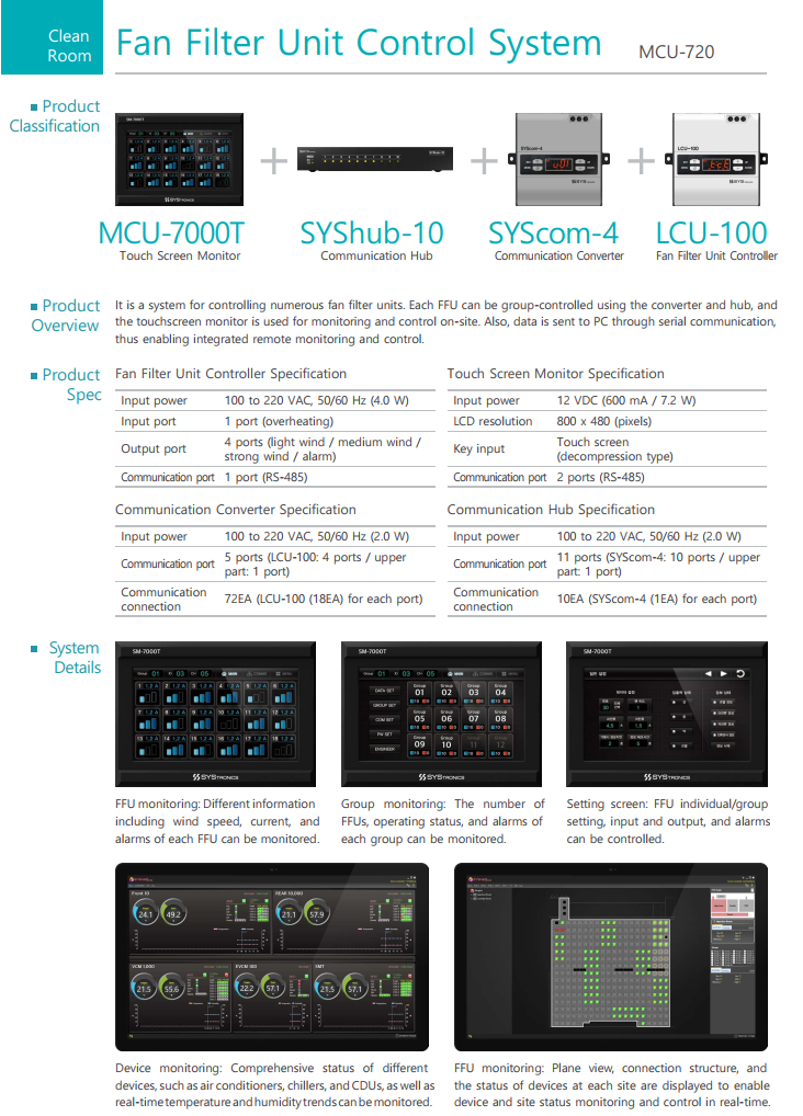 Hệ thống điều khiển bộ lọc quạt MCU-720 SYStronics
