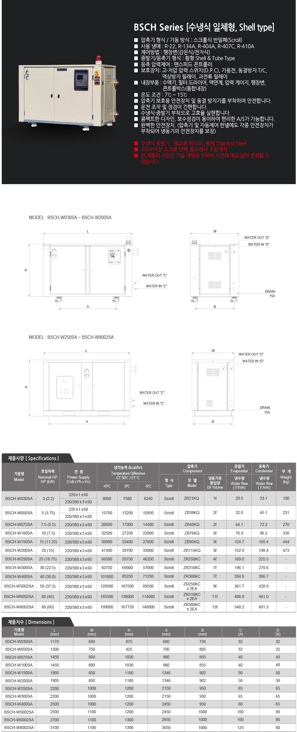 Máy lạnh Chiller BSCH tích hợp giải nhiệt nước [Shell Type] - BUSUNG Hàn Quốc