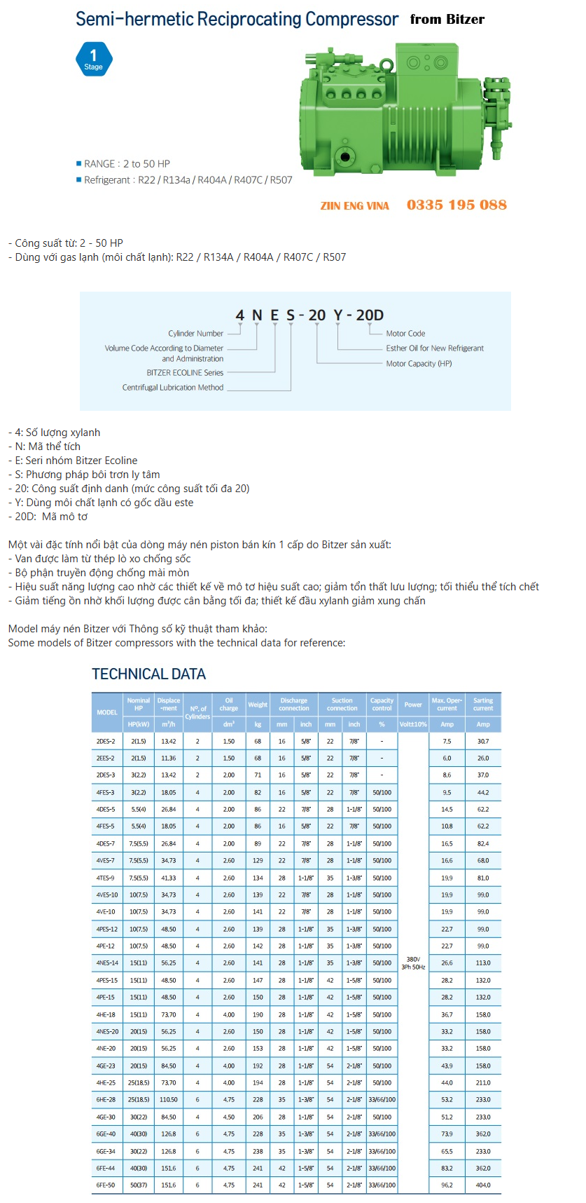 Máy nén kiểu pit tông bán kín / Máy nén piston bán kín 1 cấp của hãng sản xuất Bitzer